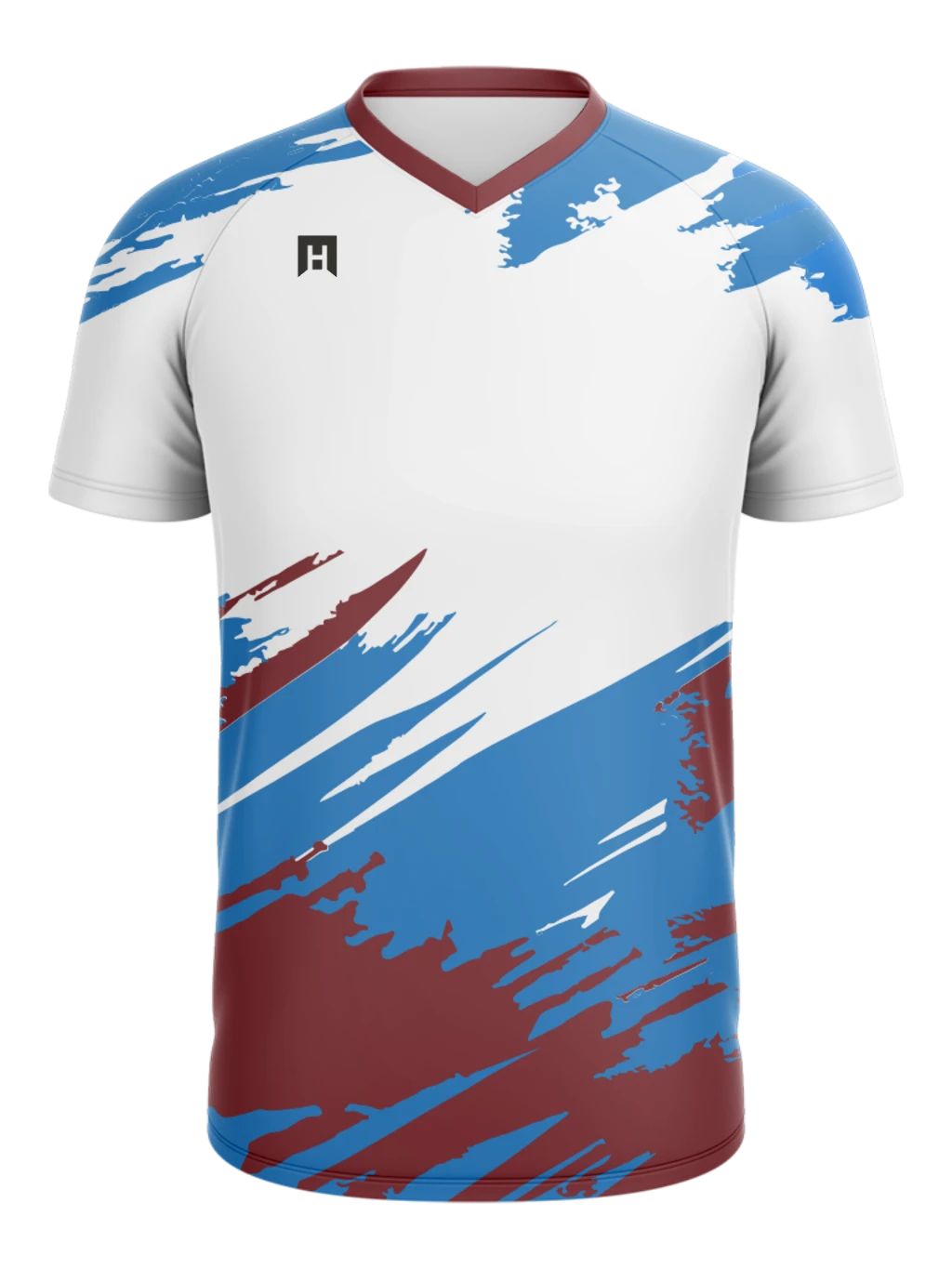 • V-neck collar: athletic neckline with pro styling