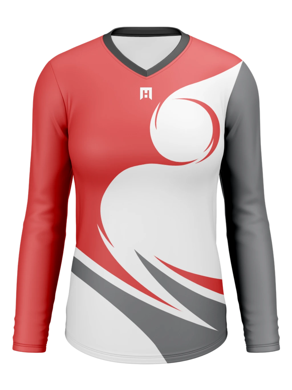 Multi-Sport Women’s V-neck Long Sleeve Jersey – Cut & Sew Sublimated